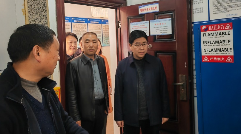 为确保新学期教学科研工作安全有序开展,切实加强学校危险化学品及实验室安全管理,防范化解安全风险, 3月5日下午张伟副校长在教务处等职能部门负责人的陪同下,深入一线,对学校危化品仓库、污水处理系统及化工楼实验室进行了全面细致的安全检查,材料与化学工程学院院长刘石泉及相关院领导、实验室主任等陪同检查。